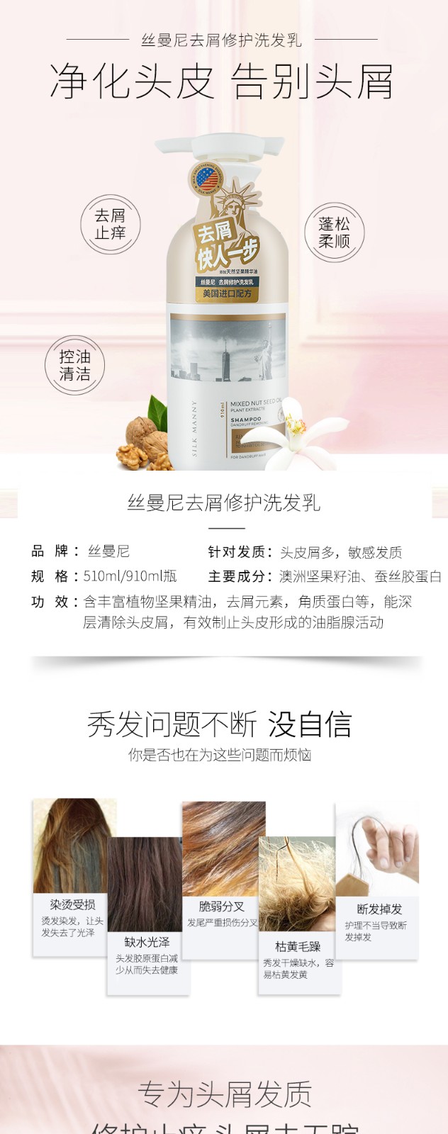 SILK MANNY丝曼尼,中高端洗护发品牌,富含多种精萃精油,广州有喜企业打造。