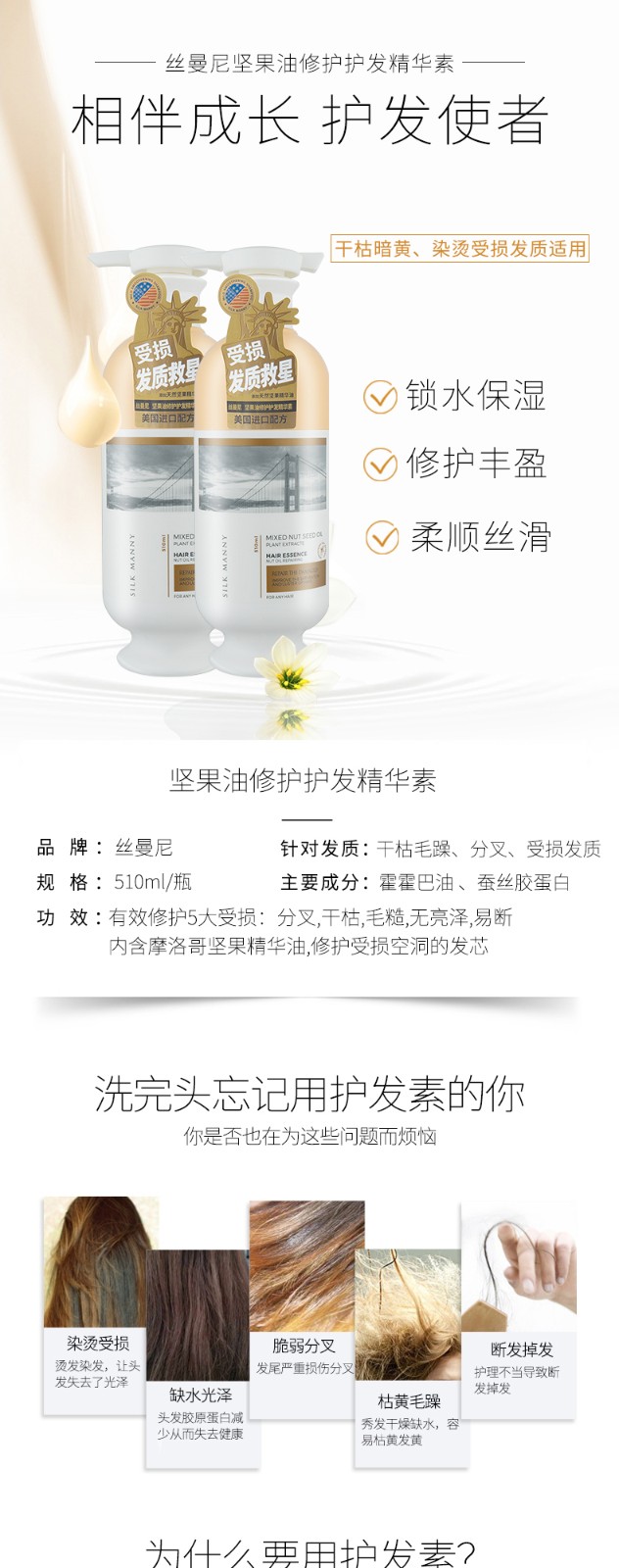 SILK MANNY丝曼尼,中高端洗护发品牌,富含多种精萃精油,广州有喜企业打造。