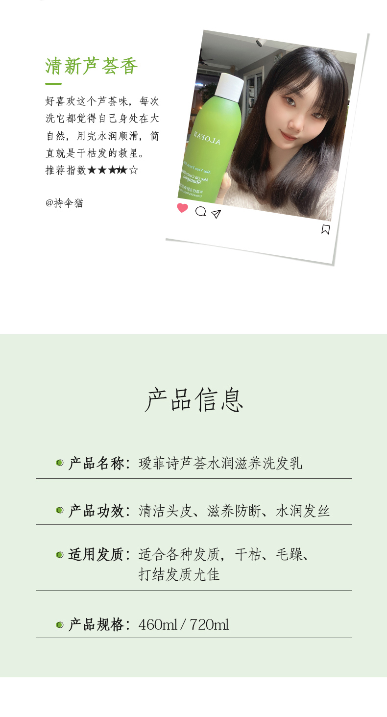 芦荟水润滋养洗发乳460ml