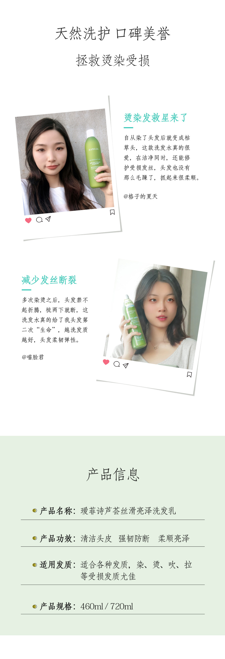 芦荟丝滑亮泽洗发乳460ml