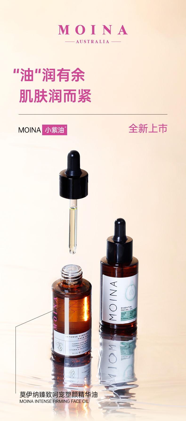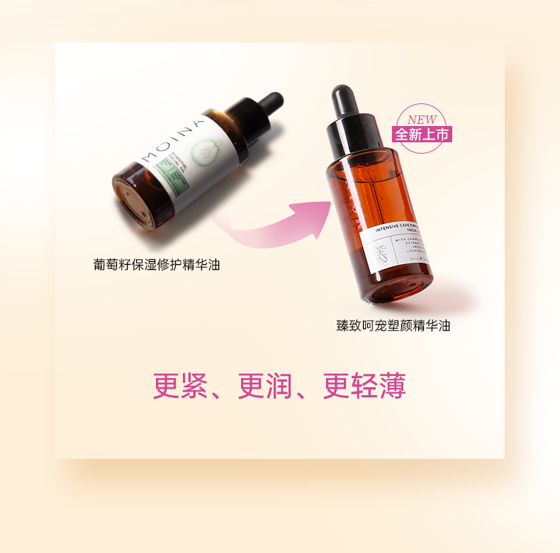 MOINA莫伊纳,源自澳大利亚的天然护肤品牌,主打葡萄籽多酚等植物精粹成分。