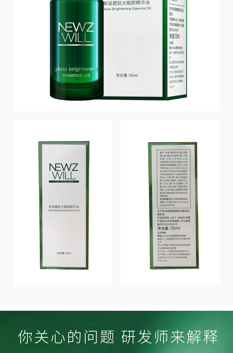 2014年,NEWZWILL新姿葳与德国最大原料研发供应商Symrise德之馨展开深入技术合作与成果分享机制,用国际一流前沿技术解决亚洲人群肌肤常见问题,研发出修护、美白、循环、多效的护肤产品。