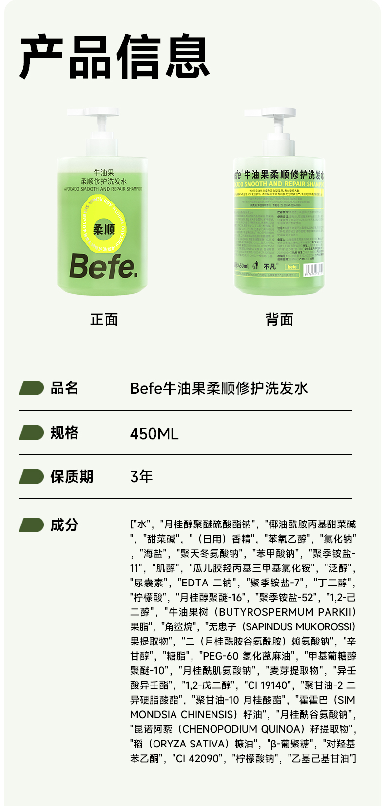 牛油果柔顺修护洗发水450ml