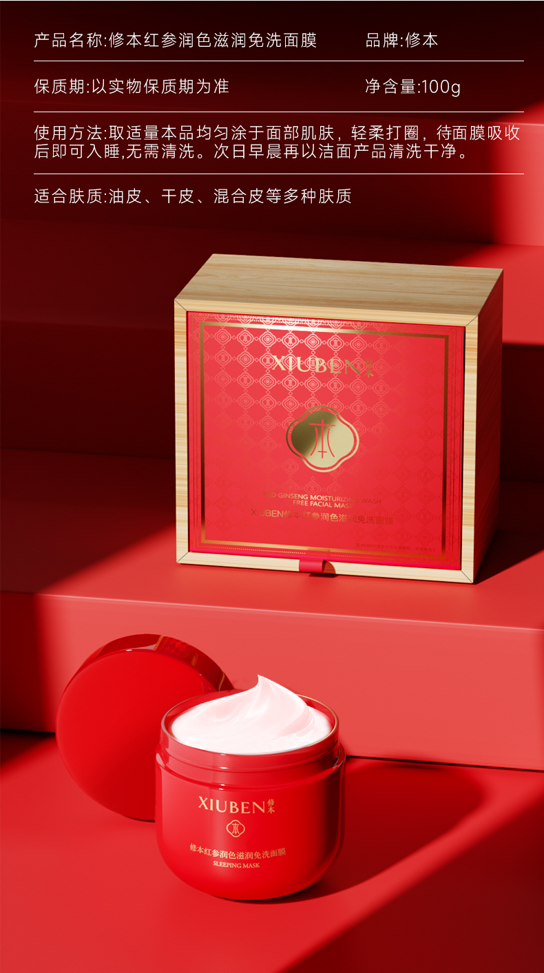 红参润色滋润免洗面膜