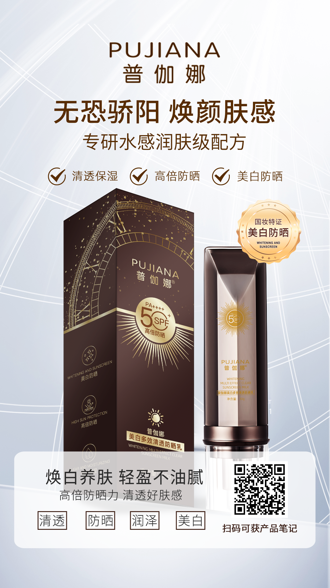 美白多效清透防晒乳(棕色)