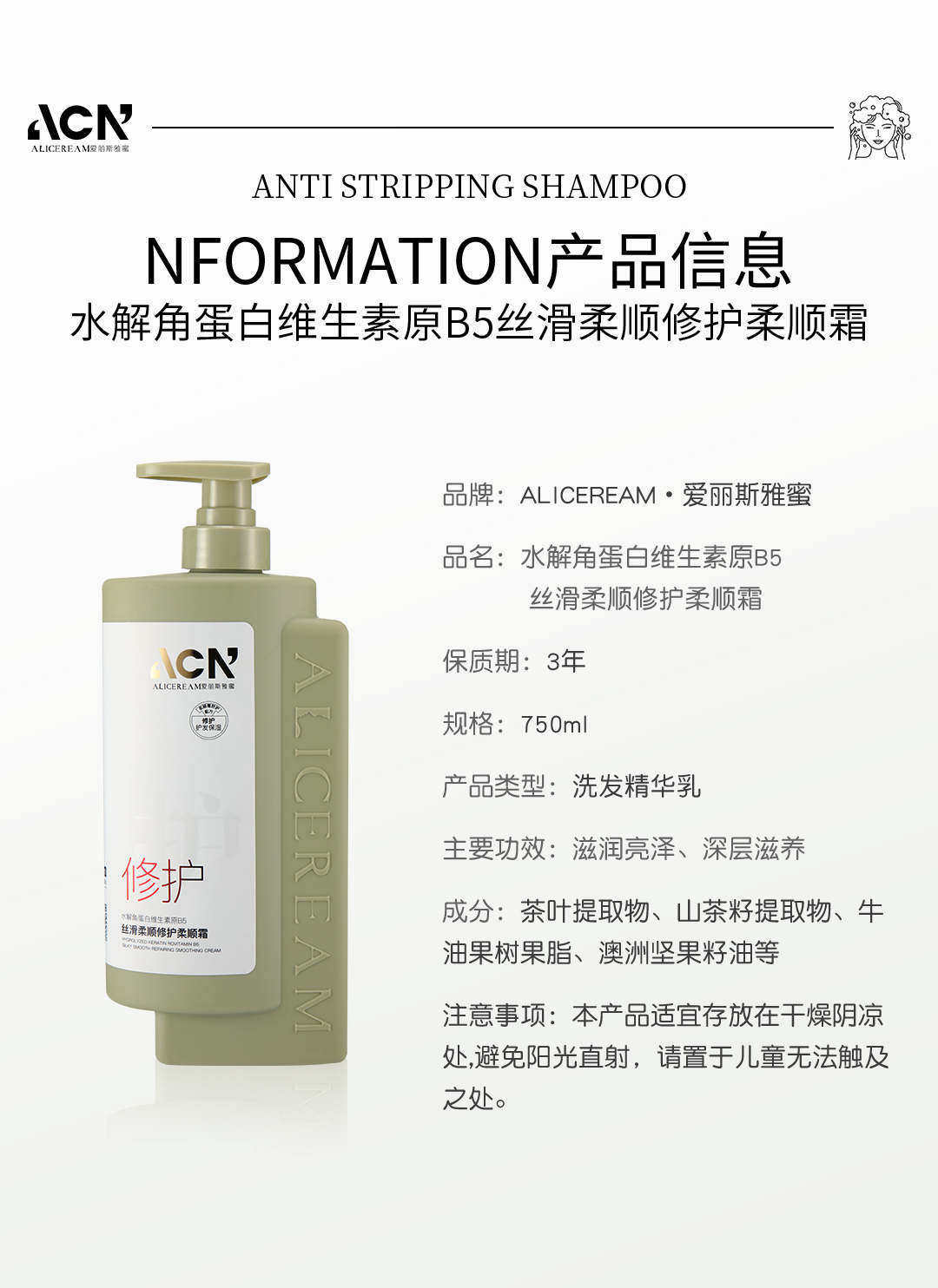 水解角蛋白维生素原B5丝滑柔顺修护柔顺霜750ml