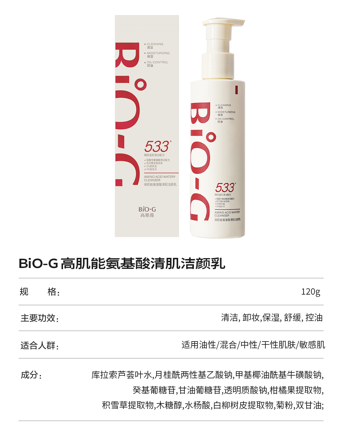 高肌能氨基酸清肌洁颜乳