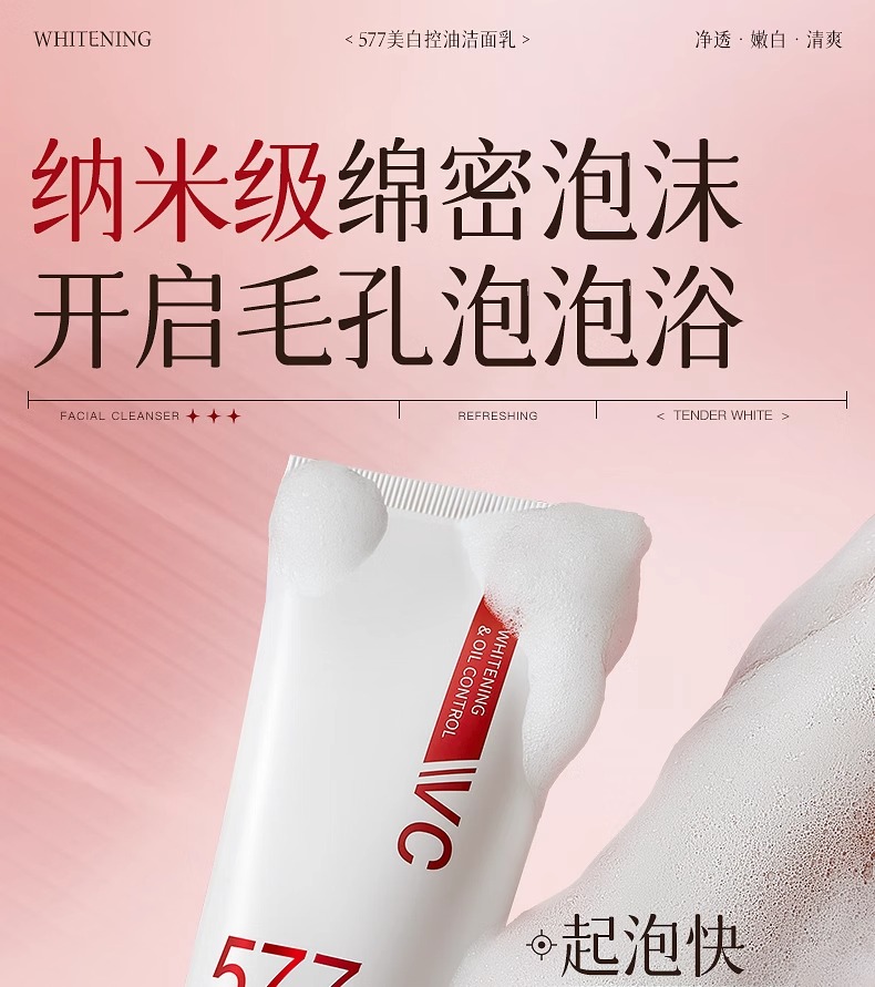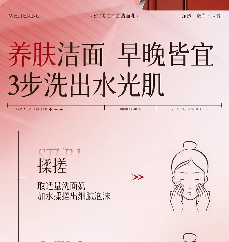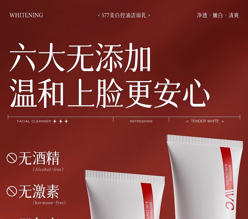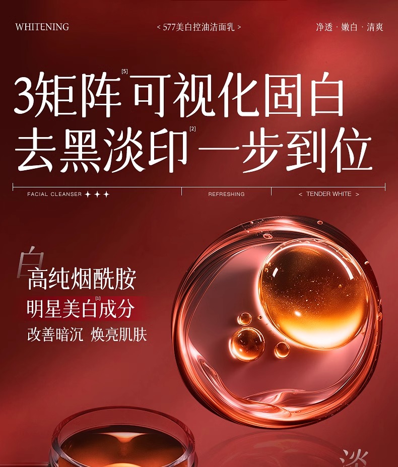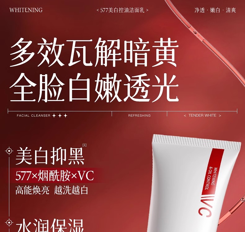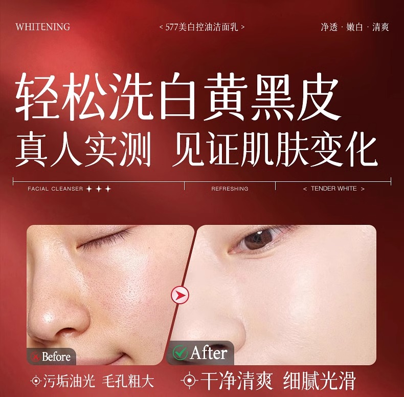 美白控油洁面乳120g(577红白版)