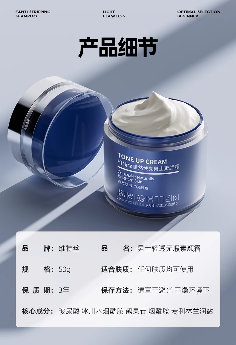 自然焕亮男士素颜霜50g