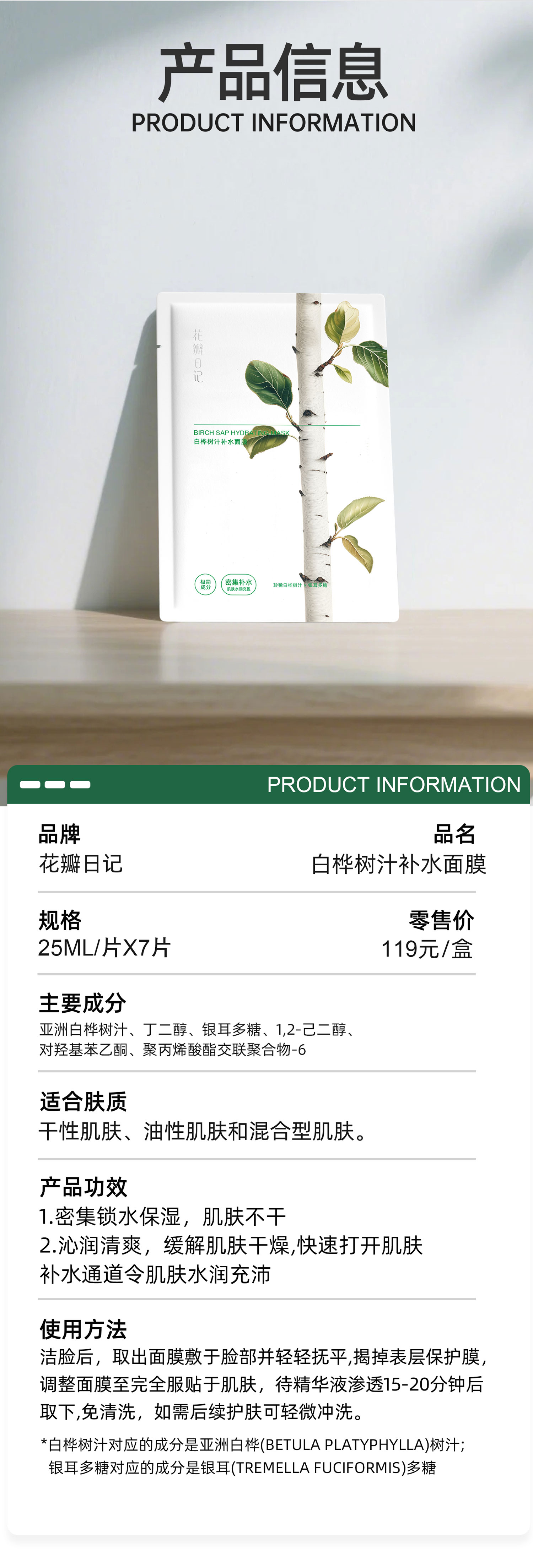 白桦树汁补水面膜