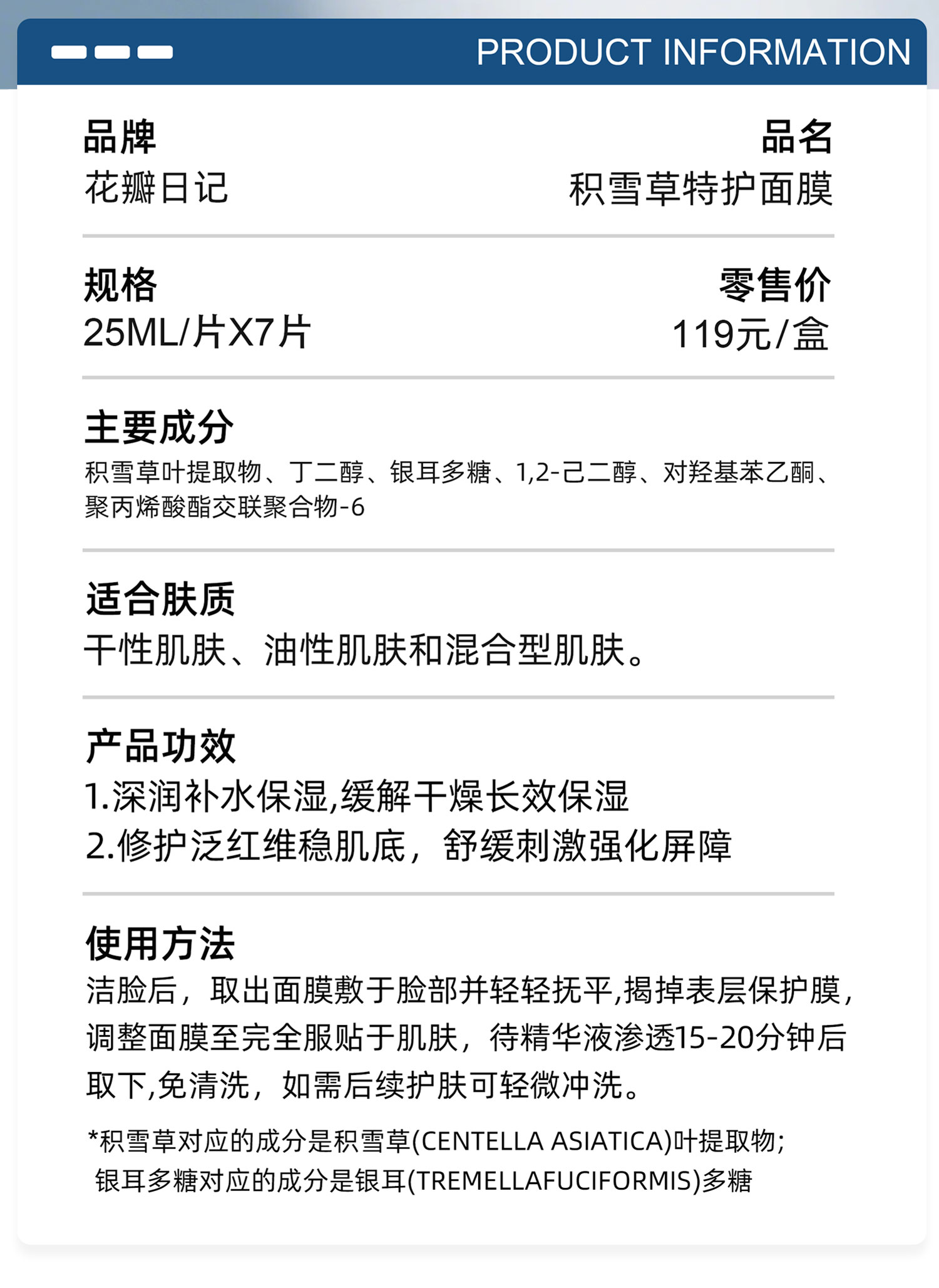 积雪草特护面膜