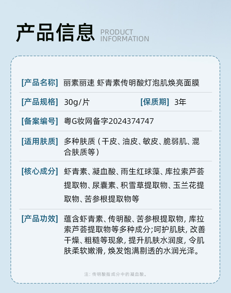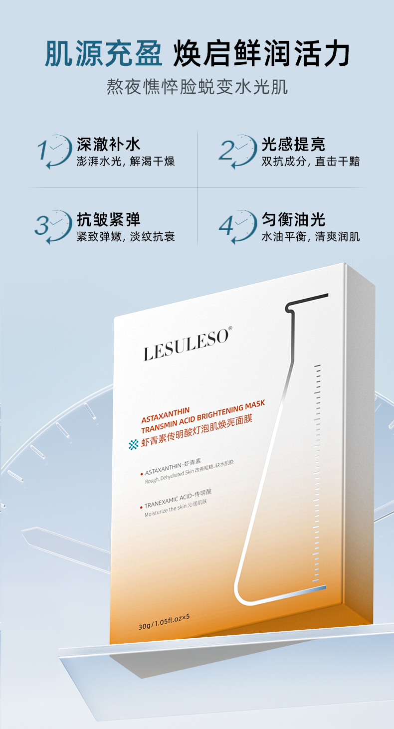 虾青素传明酸灯泡肌焕亮面膜