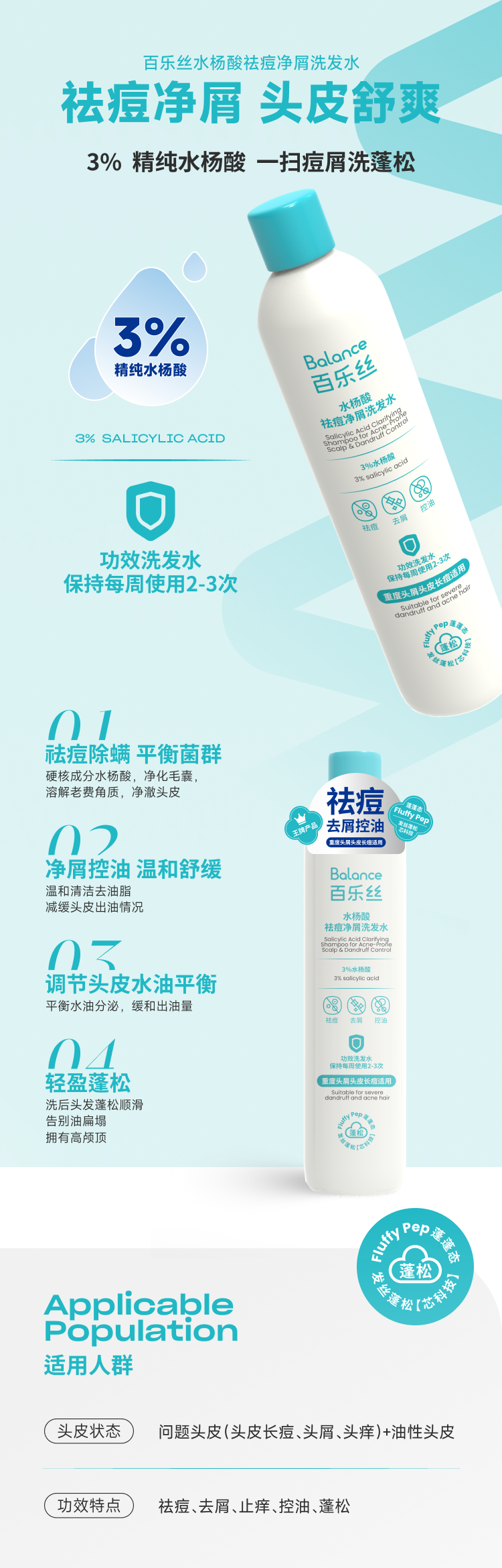 水杨酸祛痘净屑洗发水