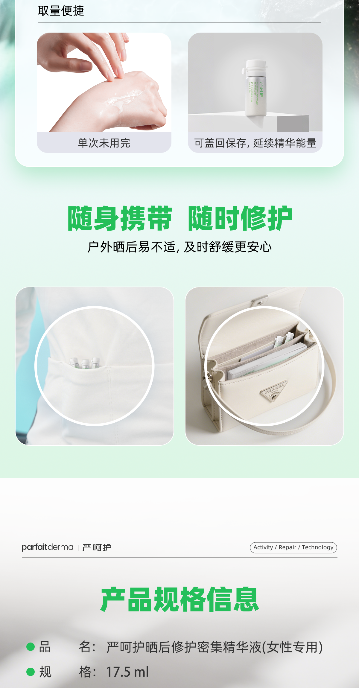 晒后修护精华液次抛(女士专用)晒后舒缓补水修红褪红敏感肌可用