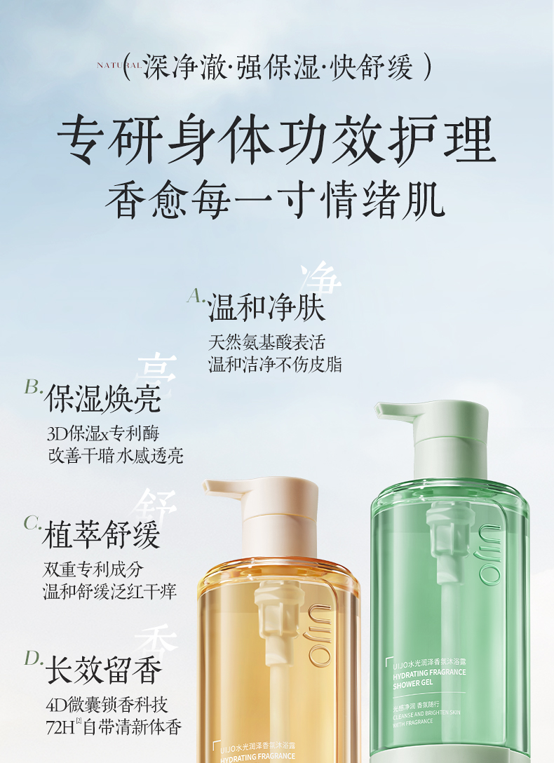 水光润泽香氛沐浴露500ml(煦时谣-黄)(春山空-绿)