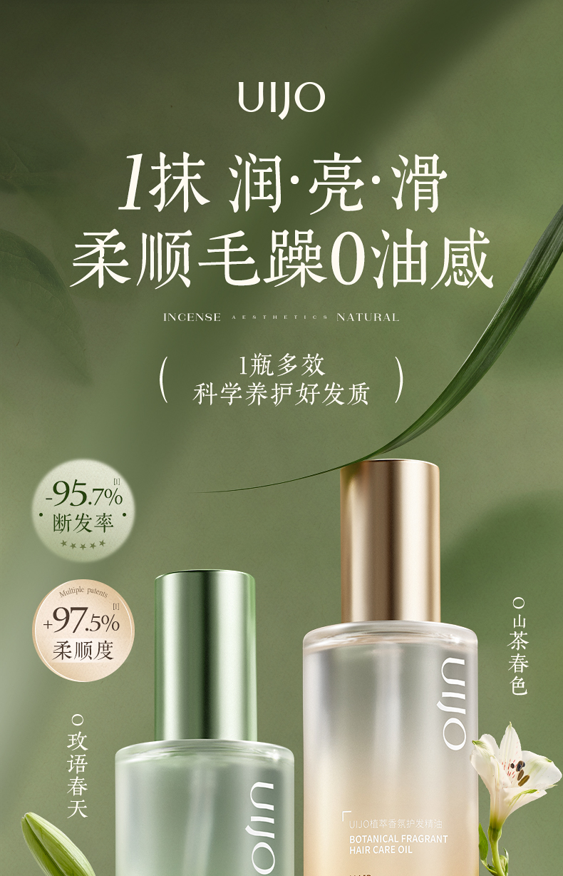 植萃香氛护发精油100ml(煦时谣-黄)(春山空-绿)