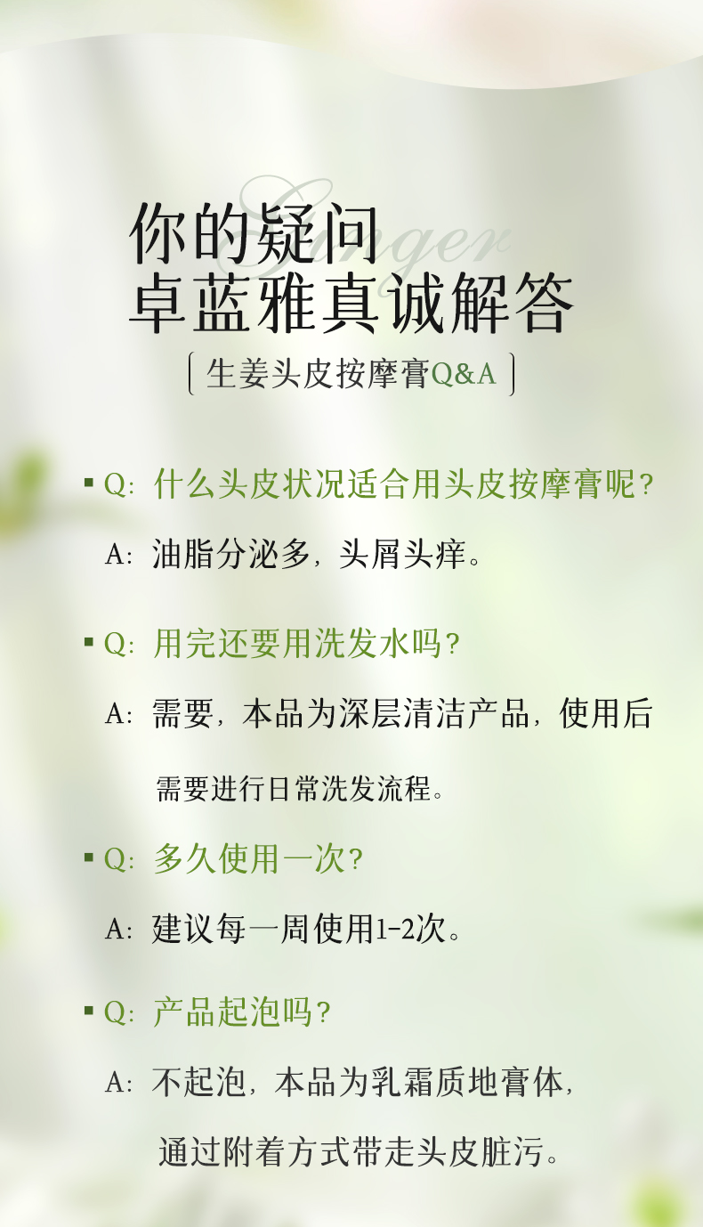为保证产品上乘,ZOOLY卓蓝雅除了严格甄选全球各地优质天然植物成分,更在四川乐山临近峨眉山的原始森林区域自建生姜种植生产基地,此地海拔均在2000米以上,土壤没有受到过污染。ZOOLY卓蓝雅坚信,只有健康的土地,才能孕育出最天然的原料。