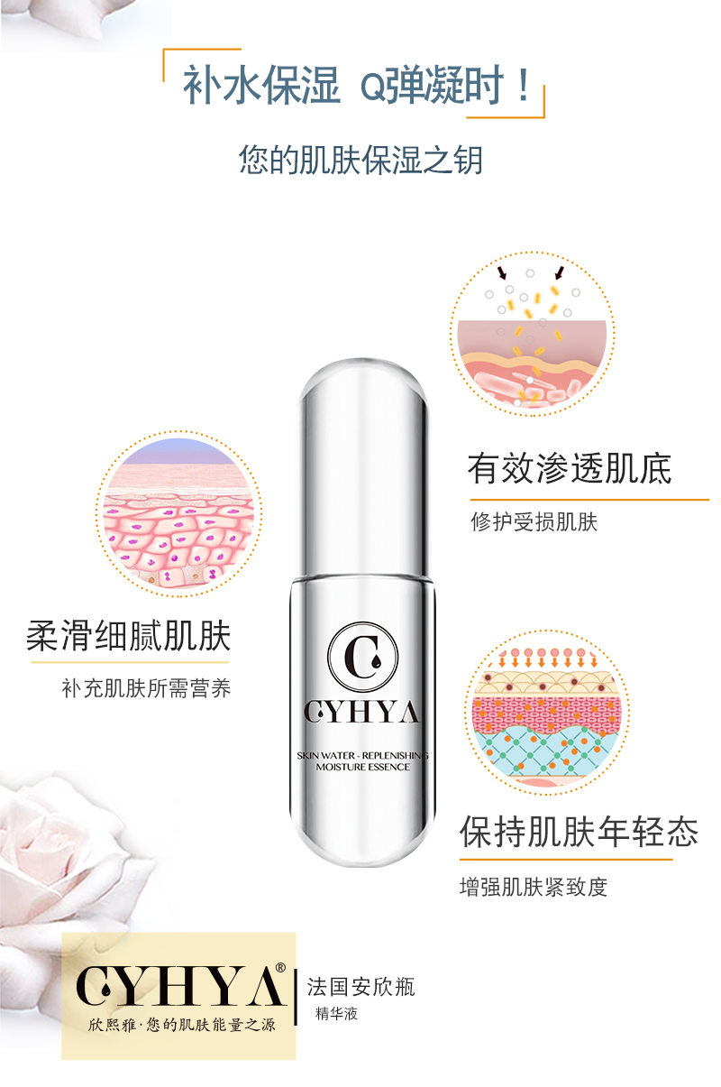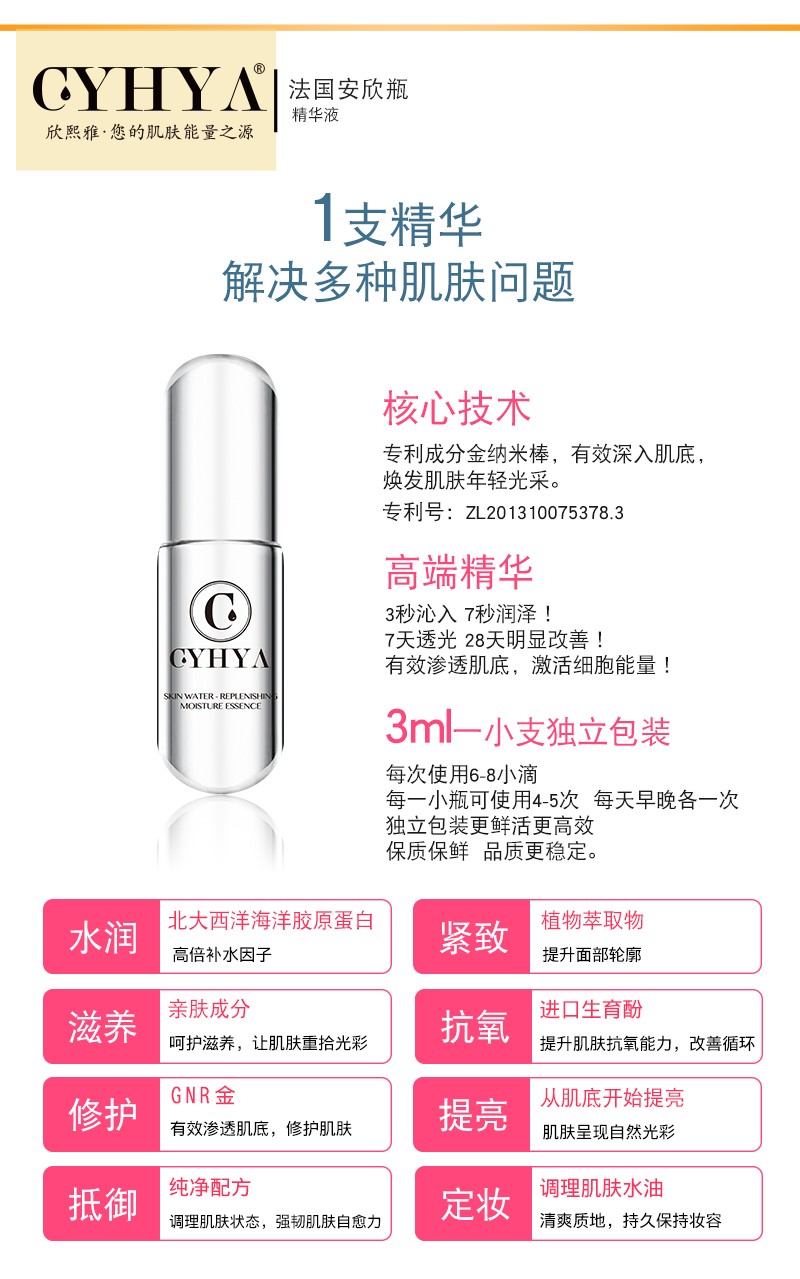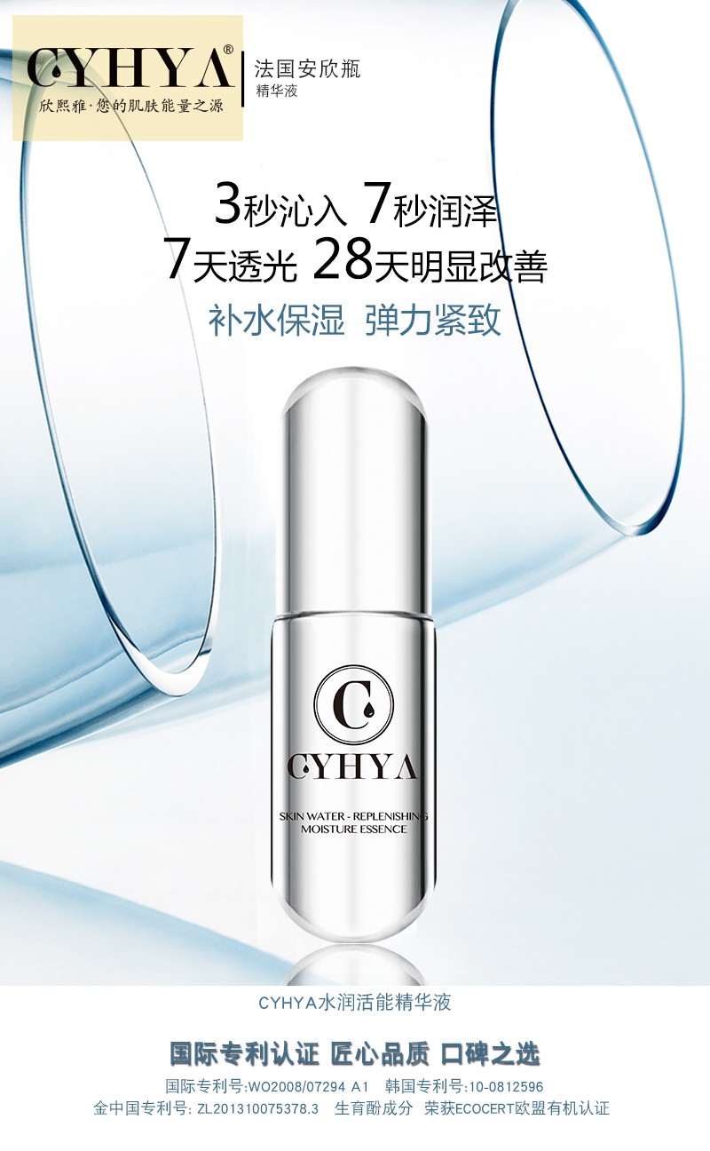 CYHYA欣熙雅,源自法国的高科技精华护肤品牌,致力于提供以优质精华为核心的护肤系列精品,旗下每一款单品均坚持添加国际认证的高端精华。由法国博士Vail reissa Cyhya(韦尔莱莎·欣熙雅)研制。