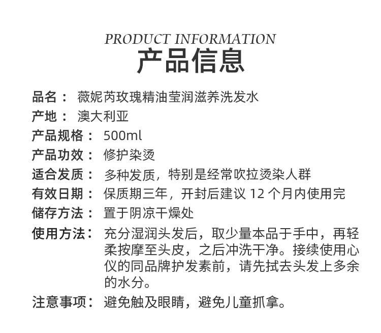 玫瑰精油莹润滋养洗发水(500ml)